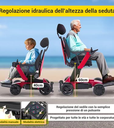 Una sedia elettrica leggera, pieghevole e progettata per farti tornare indipendente, dentro e fuori casa.