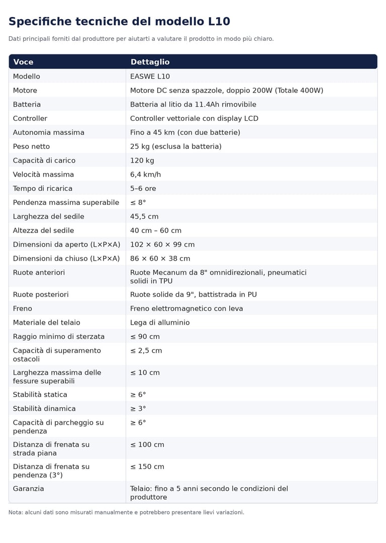 Il modello L10 è pensato principalmente per l’uso quotidiano in ambienti interni e su percorsi regolari, ma può essere utilizzato anche all’esterno in contesti adatti e su superfici compatibili, secondo le indicazioni del produttore.